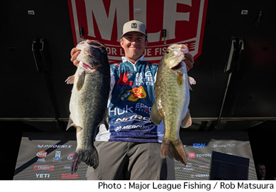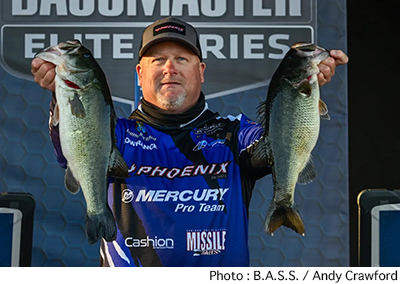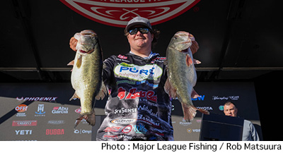 アラバマ州レイク・ガンターズビルで開催されているB.A.S.S. Elite Series第1戦はトーナメント2日めを終了。明日のセミファイナルに進出する上位50名が決定した。初日のリーダー、コリー・ジョンストンはこの日16ポンド1オンスとウエイトを伸ばせず10位に後退。代わって首位に浮上したのは初日18位につけていたカイル・ウェルチャーだった。この大会トップタイとなる24ポンド9オンスをウエイインし、トータルウエイトを45ポンドとしている。以下、上位陣は2位ジェイミー・ハートマン、3位ハンター・シュライオック、4位ステットソン・ブレイロック、5位ケイレブ・クーファルとなっている。日本人では初日20位につけていた伊藤巧が18ポンド2オンスを追加し、21位でセミファイナル進出。藤田京弥は69位、木村建太は76位で大会を終えている。