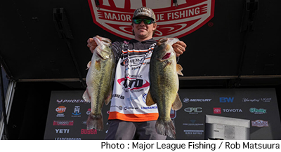 アラバマ州ウィーラー・レイクで開催されているMajor League Fishing Pro Circuit第3戦はトーナメント2日めを終了。明日のファイナルに進出する上位46名が決定した。初日のリーダー、カル・レインはこの日も好調を維持。20ポンド4オンスをウエイインしてトータルウエイトを46ポンド6オンスとして首位をキープしている。以下、上位陣は2位マット・ベッカー、3位ドリュー・ボッグス、4位バンクス・ショウ、5位プレストン・コリセックとなっている。深江真一は前日の60位から50位に順位を上げたものの、ファイナル進出を逃している。
