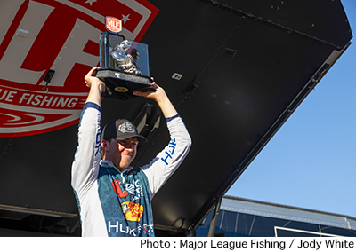 フロリダ州ハリスチェイン・オブ・レイクスで開催されたMajor League Fishing Pro Circuit第1戦はトーナメントの全日程を終了した。予選を通過した上位50名で競われたこの日、トーナメントリーダーのドリュー・ギルは大会を通じてのトップウエイトとなる26ポンドをウエイイン。トータルウエイトを66ポンド4オンスとして2位のブロディ・キャンベルに18ポンド近い大差をつけての圧勝を飾った。アンブレラリグやスイムジグ、チャターベイトなどを使用したと語っている。
