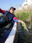 水門をくぐり、すぐにピッチングでショアラインを攻め出した。ほんの5投めくらいで1尾め(約1000g)を釣り上げた。2尾め(約1300g)をヒットさせるまでに要した時間はたったの5分。黒部川のポテンシャルは充分に伝わった。