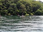 JBワールド・エコワールドシリーズ第4戦 ゲーリーヤマモトCUP野尻湖大会は2日めを終了。今日も朝から晴天に恵まれず、ぐずついた天候の中競技は行われた。初日5位につけた相羽純一さんが4315gをウエインンし、2日めの成績でトップに。さらに暫定総合順位の首位にも躍り出た。暫定総合で2位以下には順に池田豊さん、赤嶺吉蔵さん、福島健さん、神谷勇紀さんが入っている。