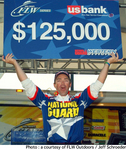カリフォルニア州クリア・レイクで開催されてたFLWシリーズ・ウエスタンディビジョンは、トーナメントの全日程を終了。前日まで2位に7Lb以上の大差をつけていたクリス・ザルディーンが圧倒的有利と見られる中、驚異の逆転劇が起こった。ここまでコンスタントに20Lbオーバーをマークしていたザルディーンは、この日16Lb4ozのウエイイン。トータルウエイトを85Lb4ozでフィニッシュすると、前日2位につけていたアンドレ・ムーアは25Lb7ozをウエイインしてトータルウエイトを86Lb13ozとしてザルディーンを逆転。しかし、この日の真の主役は前日6位につけていたティム・クリンガーだった。クリンガーはこの日、なんと32Lb8ozというビッグゲイン。トータルウエイトを89Lb12ozにまで伸ばし、ザルディーンはもちろんムーアまでをもぶち抜いての逆転優勝を果たした。ちなみに、最終日における32Lb8ozというウエイトはFLWの新記録だ。クリンガーのメインパターンは、オスプレイとベイトスミスのスイムベイトをシャローエリアで使うというものだった。