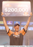 アーカンソー州ビーバー・レイクで開催されたWal-Mart FLW TOUR第4戦、Wal-Mart Openはトーナメントの全日程を終了。予選を通過した10名のアングラーによってウエイトをゼロに戻して競われた前日は、名手ジェイ・イエラスが2位のアンディ・モーガンに2Lb7oz差でリード。しかしこの日、イエラスは3尾でのウエイインとなり3Lb15ozと振るわず。一方、モーガンはきっちりとリミットメイクを達成して8Lbをウエイイン、見事な逆転劇でFLW戦における自身初優勝を飾った。4日間を通じてモーガンがねらっていたのは、ここまでイエラスが語っていたパターンと同じく、ラージマウスバスのスクールをねらうというもの。メインに使用していたルアーはTiny ‘E’スイムベイトと、ズームのキャンディフィネスワーム(カラーはウォーターメロン)をセットした1/8ozのウォーイーグルシェイキーヘッドだったと語った。惜しくも優勝を逃したイエラスだが今期は好調を維持しており、現在のAOYレースでは首位を走っている。このほか、今回優勝を飾ったモーガンが2位、深江真一さんが3位という順位になっている。