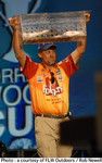 アーカンソー州レイク・ワチータで開催されているFLW TOUR Forrest Wood Cupは、予選ラウンドを通過した上位10名による決勝ラウンド初日が開催された。ウエイトをゼロに戻して競われたこの日は湖上に多くの観戦ボートが出現。プレッシャーなどの要因もあってか、この日のリミットメイカーはわずか1名にとどまった。この1名こそ、11Lbをウエイインしたスコット・サッグス。「キャッチした魚はジャスト5尾だった。スピナーベイトで3尾、ビッグワームで2尾だった」。と語ったサッグスのウエイトはけっして大きなものではなかったが、2位のグレッグ・ピューに約4Lbの差をつけて明日の最終日に臨む。このほか、3位にデビッド・ダッドリー、4位にダレル・ロバートソン、5位にマイク・サーマンがつけている。