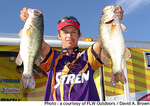 テキサス州レイク・テキソーマで開催されたStren Seriesテキサスディビジョン第4戦はトーナメントの全日程を終了。予選を通過した上位10名で競われたこの日、初日から首位をキープしていたロニー・ホプキンス・ジュニアがトップウエイトとなる13Lb11ozをウエイイン。トータルウエイトを55Lb15ozとし、堂々の完全優勝を達成した。ホプキンス・ジュニアのメインパターンは、岩の多いショアラインでのクランキング。「シャローのロックと風がキーだった。また、バスのバイトは昼近くに集中していて、朝の時間帯は反応があまりよくなかったんだ」と語ったホプキンス・ジュニアが使用していたのは、ハンドメイドのクランクベイト。初日に当たりルアーをロストしてしまったが、友人のトビー・ハートセルからあるクランクベイトを譲り受けた。それが木村建太さんが作っているキムケン・クランクで、これが見事に代役を果たしてウイニングルアーとなったそうだ。