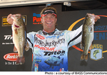 フロリダ州レイク・オキチョビーで開催されているBASS Elite Series WildCardはトーナメント2日めを終了。トーナメント初日に21Lb5ozをウエイインして首位に立ったバイロン・ベルビックは、この日8Lb3ozとスコアを崩しながらも首位をキープした(写真は初日のウエイイン)。「朝、自分のスポットに向かったらクラッピーねらいのボートが入っていた。なんとか首位を守れてホッとしているよ」と語ったベルビックはトータルウエイトを29Lb8ozとしており、今回のトーナメントの目標であるトップ10入りに大きく前進した。以下、2位キース・フィリップス、3位スティーブ・ダニエル、4位リック・アッシュ、5位コーリー・ウォルドロップという順位になっている。