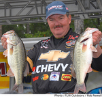ジョージア州クラークス・ヒル・レイクで開催されたFLW Series BP Eastern第4戦は、トーナメントの全日程を終了。前日までに圧倒的なリードを築いていたデビッド・フリッツはこの日6Lb12ozと低迷。しかし、トータルウエイト59Lb10ozで2位をまったく寄せつけることなく余裕の逃げ切りで優勝を飾った。3日めにして52Lb14ozをマークしていたフリッツに対し、2位のタン・リーは4日間のトータルウエイトが49Lb5oz。フリッツはこの最終日、たとえノーウエイトでも優勝だったということになる。フリッツのベインベイトは、やはりクランクベイトだった。ラパラのDT-10、DT-14、DT-16、そして新製品のDT-20で単体のスタンディングティンバーをねらい撃ちにしたという。「魚はスタンディングティンバーの上でサスペンドしていた。クランクベイトでは攻めきれない深さのスポットでは、ラパラのクランキンラップを使ったよ。昔のコーデルのワンノッカーと同じタイプのバイブレーションだ」と語っている。