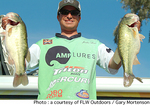 アリゾナ州レイク・ハバスで開催されているストレーン・ウエスタンディビジョン第2戦はトーナメント2日めを終了。前日とは打って変わって好天に恵まれたこの日だったが、前日までの強風による濁りの影響もあってアングラーたちはリミットメイクに苦戦。この日、5尾のリミットを達成したプロ部門のアングラーは29名となっている。前日のリーダー、ブライアン・ノーラーがこの日3尾のウエイインで後退する中、19Lbというグッドウエイトを持ち込んだのがジャスティン・カー。カーはこのグッドウエイトでトータルウエイトを28Lb13ozとし、暫定首位となった。「今日は2尾バラしてしまったものの、全体的にはよかったと思う。昨日は推定6Lbの魚をバラしてしまって精神的に追い込まれたが、今日はなんとかリカバリーすることができた。今までにはないいい傾向だよ」と語ったカー。メインに使用していたのはペッパージグとダウンショットリグのロボワームで、水深3〜20ftという広いレンジにあるロックやウッドカバーをねらったと明かしている。