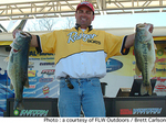 テキサス州レイク・アミスタッドで開催されているFLW Series Fish-Offはトーナメント2日めを終了。Forrest Wood Cup出場を賭けて東西のアングラー60名が1対1で対戦するブラケット形式で競われているこの大会。対戦を見るとイースタン勢16名が優位に立っているものの、トータルウエイトでは上位10名中7名がウエスタン勢。東西対決はほぼ互角の争いといえるだろう。トップウエイトをマークしているのは、この日34Lb5ozというビッグサックを持ち帰ったクレイトン・メイヤー。メイヤーはトータルウエイトを46Lb10ozとしたが、対戦相手のマーク・ローズも38Lb14ozというグッドウエイトをマーク。ローズは全体で10番手のウエイトを持ちながらブラケット方式ならではの展開に苦戦を強いられている。ベテラン対決として注目されているラリー・ニクソンとマイク・フォークスタッドの対戦は、ニクソン30Lb15oz、フォークスタッド26Lb15ozでニクソンが優位に立った。