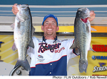 サウスキャロライナ州レイク・サンティークーパーで開催されているストレーンシリーズ・サウスイーストディビジョン第3戦は、トーナメント2日めを終了。前日よりややウエイトが落ちているもののコンディションは良好で、この日もプロ部門の15名が20Lb台のウエイトをマークした。初日のリーダーとなったオット・デフォーはこの日22Lb6ozをウエイイン。トータルウエイトを50Lb4ozとして依然首位をキープしている。この日のデフォーのメインパターンは、ノーシンカーのワームをサイプレスツリーの根の間にスキッピングしていくというもの。ルアーは前日と同じくバークレイの7inパワーシェイキーワームで、8Lbフロロカーボンラインを使用したという。デフォーは「明日も少しプランを変更するつもりだ。エリアとねらい方を少し変えようと思っているよ」と語っている。なお、日本人アングラーでは小島宏さんがこの日21Lb4ozというグッドウエイトをマーク、トータルウエイトを29Lb13ozとして前日の89位から35位へとジャンプアップしている。
