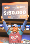 サウスキャロライナ州レイク・ノーマンで開催されたWal-Mart FLW Tourは第3戦はトーナメントの全日程を終了。ファイナルラウンド初日となる前日のトップウエイトをマークしたショーン・ホーンクは、この日もトップウエイトとなる13Lb11ozをウエイイン。2日間のトータルウエイトを27Lbとし、予選ラウンドの勢いそのままに完全優勝を飾った。ホーンクにとっては、今回がFLW Tourにおける初めての優勝。「もし優勝できなかったら、帰路のドライブでは怒り狂ってしまうことろだった。これで帰りのドライブも楽しくなりそうだよ」と会場を笑わせたホーンク。ドック撃ちとサイトフィッシングという2つのメソッドが彼のパターンだったが、状況の変化にアジャストできたことが優勝のキーだったようだ。「大会中は朝起きてもどこで釣りをすればいいのか、まったく頭に浮かばなかった。それならば、と初日以降はすべて新しいスポットを開拓した。ガソリンもバッテリーも相当使ったが、なんとか新しいエリアを開拓できたよ。ベイトも同じで、最初はベッドをねらうときシェイキーヘッドを使っていたが、ノーシンカーワッキーの4inワームにスイッチしたらこれが効いた。状況にアジャストできたことが優勝のキーだったと思う」と語っている。