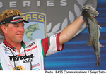 サウスキャロライナ州レイク・マーレイで開催されているBASS Elite Series第6戦“Carolina Clash”はトーナメント2日めを終了、明日のトーナメント3日めに進出する上位50名が決定した。前日首位のグラント・ゴールドベックはこの日14Lbとややスコアを崩し、3位へと後退。替わって首位に立ったのは、この日17Lb7ozをウエイインしてトータルウエイトを35Lb7ozとしたリック・モリス。ビッグフィッシュだけにフォーカスしていたというモリスは、スピナーベイトやトップウォーター、そして詳細は明かしていないものの、キャロライナリグのビッグベイトで魚をキャッチしたという。日本人アングラーでは桐山孝太郎さんが30位で明日のトーナメント3日めに進出。いっぽう、清水盛三さんが66位タイ、大森貴洋さんが73位、宮崎友輔さんが96位で大会を終えている。