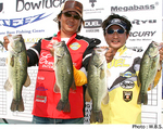 茨城県霞ヶ浦で開催されているW.B.S.プロシリーズ第3戦は、トーナメント初日を終了。35チーム70名が参加しているこの大会。朝こそ防寒着が必要な寒さながらその後は気温が上昇、その後は強い風が吹くという難しいコンディション。この状況の中、5270gのトップウエイトを持ち帰ったのは蛯原英夫・西村嘉高チーム。以下、2位小島貴 ・柏木健作チーム、3位安藤毅・小林研一チーム、4位金光忠実・蜂谷制チーム、5位赤羽修弥・竹内聡チームとなっている。大会に関する詳細はW.B.S.の公式サイト、W.B.S.onLINEにて。