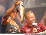 サウスキャロライナ州レイク・マーレイで開催されているForrest Wood Cupは、予選を通過した上位10名で競われたトーナメント3日めを終了。ウエイトをゼロに戻して競われたこの日、16Lb1ozをマークしてトーナメントをリードしたのは予選を首位で通過したマイケル・ベネット。前日はいろいろな場所でいろいろな釣りをする“ジャンクフィッシング”でウエイトを稼いだベネットだが、この日も30カ所ほどのスポットを回ったという。「新しいスポットを開拓しながらの釣りで少しナーバスだったけど、スタートして3時間ほどで3尾のキーパーをキャッチした。悪くないペースだったので、その後は慌てずに釣り続けることができたよ」と語っている。以下、2位デイブ・ラフィーバー、3位テリー・ボルトン、4位クリス・バームガードナー、5位ブレント・エーラーとなっている。