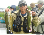 全国のフローター愛好家が集まるフローター団体F.B.I. (フローター・バサーズ・インターナショナル)が開催するF.B.I.フローターマスターズ 第7戦が9月7日、福島県桧原湖にて開催された。25名が参加したこの大会、スタート時は好天に恵まれたものの、昼からは激しい雷雨に見舞われた。大会前日の夕方にも大雨が降っていたため、フィールドは厳しいコンディションとなっていた。ローウエイトが予想される中、トップウエイトをマークしたのは宮崎幸治さんだった。今大会のビッゲストフィッシュとなったラージマウスバスを含め、3尾で1170gをウエイイン。ぶどう島の2〜4mのフラットをスプリットショットリグのリングワームで数往復し、リミットメイクに成功したという。以下、2位は城川晃邦さん、3位は神戸俊郎さんとなっている。なお、トーナメントの詳しい結果とF.B.I.に関するインフォメーションは、下記のF.B.I.公式ウェブサイトにて。