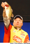 すでに全ディビジョンが最終戦を終えたストレーンシリーズ。この日は各ディビジョンの上位40名に出場権が与えられるチャンピオンシップがミズーリ州テーブルロック・レイクで幕を開けた。ストレーンシリーズはFLWで3番目のカテゴリーとなるが、マイケル・アイコネリやステイシー・キング、デイブ・ラフィーバーといったビッグネームもエントリー。チャンピオンシップの名に恥じないトップレベルの戦いとなっている。この日、17Lb1ozのトップウエイトをマークしたのはデビッド・カーティス。このレイクにはラージマウスバスとスポッテッドバスが混棲しているが、カーティスはリミットの5尾をすべてラージマウスで揃えた。以下、上位陣は2位ハーモン・デイビス、3位マーク・ゴインス、4位ステイシー・キング、5位レンデル・マーチンJr.となっている。日本人で唯一クオリファイされた中東篤志さんは2Lb14ozで150位と厳しいスタートとなった。