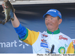 フロリダ州レイク・オキチョビーで開催されたFLWシリーズBPイースタン第1戦はトーナメントの全日程を終了。予選を通過した上位10名によって競われたこの最終日は、天候の急変に見舞われた。前日まで穏やかな日が続いていたものの、強い北風が吹き気温も急低下。10名中4名がノーフィッシュで帰着というタフコンディションとなった。この状況の中、優勝を飾ったのは前日までトップを走っていたジミー・マクミラン。悪条件ながらこの日のトップウエイトとなる16Lb14ozをマークし、トータルウエイトを74Lb4ozとして文句なしの逃げ切り優勝。スキニーディッパーのスイミングとスイートビーバーでのパンチングがメインパターンだったと明かした。9位で最終日に臨んだ深江真一さんはこの日唯一のリミットメイカーとなり、9Lb10ozをウエイイン。トータルウエイト59Lb9ozで3位でのフィニッシュ。深江さんは5inスイムセンコーと、チャターベイトのブレードを装着したオールテライン・スイミングジグに4inスイムセンコーをトレーラーにしたベイトをメインに使用したと明かしている。