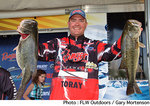 FLW Series National Guard Westernは第3戦がキックオフを迎えた。トーナメントウォーターはカリフォルニア州カリフォルニア・デルタ。アメリカ西部きってのビッグフィッシュファクトリーとして知られているが、すでにスポーニングシーズンは終わりサマーパターンへと移行する季節。この状況の中、22Lbというビッグウエイトを叩き出して初日のリーダーとなったのはレオン・ナイト。「プラクティスの手応えは今ひとつだったので、このウエイトが出せて嬉しい」と語ったナイトのパターンはグラス周りでのトップウォーターだったという。以下、上位陣は2位ドナルド・デイビス、3位ジョン・ストレリック、4位コーディー・メイヤー、5位ジョナサン・コーラーとなっている。なお、日本人アングラーでは児玉一樹さんが11Lb7ozで50位につけている。