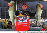 テネシー州ケンタッキー・レイクで開催されているBASS Elite Series第7戦“Tennessee Triumph”はトーナメント2日めを終了。明日の3日めに進出する上位47名が決定した。前日のリーダー、KVDことケビン・バンダムはこの日も24Lb2ozのグッドウエイトをマーク。トータルウエイトを49Lb2ozとし、2位に6Lbの差をつけて首位を快走している。詳細なパターンには触れていないものの、やはりクランキングがメインパターンのようだ。以下、上位陣は2位ケリー・ジョーダン、3位ジェイソン・クイン、4位エドウィン・エバース、5位キース・ポシェとなっている。前日4位につけていた桐山孝太郎さんはこの日18Lb9ozをマーク、トータルウエイトを41Lb3ozとして暫定6位。大森貴洋さんが20Lb1ozのグッドウエイトをマークしてトータルウエイト39Lb10ozで11位、清水盛三さんもトータルウエイト38Lb15ozで12位と、3名の日本人がファイナルラウンドに進出できるTOP 12圏内につけている。なお、宮崎友輔さんも暫定46位で3日めに進出した。