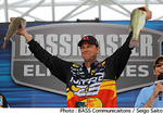 BASS Elite SeriesのAOY決定戦、Post Seasonはいよいよ最終戦に突入した。“Evan Williams Bourbon Trophy Triumph”と銘打たれた第2戦の舞台は、アラバマ州アラバマ・リバー。2日間で競われるこの大会の初日、トップウエイトとなる15Lb7ozをウエイインしたのはKVDことケビン・バンダム。レギュラーシーズンでは今ひとつ振るわなかったバンダムが、大逆転でAOYを獲得する可能性が浮上してきた。ただし、レギュラーシーズンで圧倒的な強さを見せたスキート・リースもこの日2番手のウエイトとなる12Lb4ozをウエイイン。以下、3位アーロン・マーテンス、4位エドウィン・エバース、5位グレッグ・ハックニーとなった。気になるAOYの行方だが、初日を終えての暫定ポイントはリースが277で依然首位、バンダムが275で2位。以下、3位アーロン・マーテンス(262ポイント)、4位エドウィン・エバース(256ポイント)、5位ラス・レイン(252ポイント)となっている。