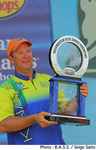 ジョージア州ウエストポイント・レイクで開催されたBASS Elite Series第5戦“Pride of Georgia”はトーナメントの全日程を終了。予選を通過した上位12名で競われたこの日、前日までの首位イッシュ・モンローは13Lb8ozに終わり3位に後退。16Lb6ozをウエイインして巻き返しを図ったエドウィン・エバースの上を行ったのが、前日まで4位のスティーブ・ケネディだった。この日18Lb11ozをウエイインしたケネディはトータルウエイトを64Lb14ozとしてエバースを抑え、見事な逆転優勝を果たした。「今回は勝つ自信があった。自分がやるべきことは分かっていたし、それを実践することができた」と語ったケネディのメインベイトはスイムベイトとキナミベイトのフラッシュ。スイムベイトはバストリックスとプロトタイプの無名モデルを使用、フラッシュはスキッピングでの使用が効いたと明かしている。