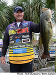 いよいよFLW Tourが今シーズンの第1戦を迎えた。昨年と同じく、キックオフの舞台は温暖なフロリダ州にあるレイク・オキチョビー。すでにスポーニングシーズンへと突入したこのレイクで33Lb9ozというヘビエストウエイトを叩き出したのは、ランドール・タープ。「キッカーをもう1尾キャッチして40Lbをねらいたいところだった」と不満な表情を浮かべたタープだったが、事実彼と2oz差の2位につけたのがブランドン・マクミラン。まだ初日とはいえ、この2名の動向が優勝の行方を左右しそうだ。以下、上位陣は3位ジョン・コックス、4位アート・ファーガソン3世、5位ローランド・マーチンとなっている。日本人アングラーでは大森貴洋さんが15Lb9ozで34位タイ、深江真一さんが5Lbをウエイインして143位タイにつけている。