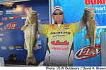ルイジアナ州トレドベンド・リザーバーで開催されているEverStart Series Texas Division第3戦はトーナメント2日めを終了。初日のリーダー、ティム・レノーはこの日13Lb15ozとウエイトを伸ばせず4位に後退。替わって首位に浮上したのは、前日4位のデビッド・ハーベイだった。この日20Lb1ozをウエイインしたハーベイはトータルウエイトを45Lb11ozに伸ばしている。「今日はタフになっていた。パターンも変わって、昨日までのようにクランクベイトではバイトがなかった」と語ったハーベイ。この日のメインベイトはキャロライナリグとダウンショットリグだったという。以下、上位陣は2位グレン・フリーマン、3位ラモンテ・ロイド、5位ジョージ・ジーン Jr.という順位となっている。