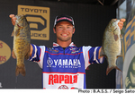 ウィスコンシン州グリーン・ベイで開催されているB.A.S.S. Elite Series第7戦はトーナメント3日めを終了。明日のファイナルに進出する上位12名が決定した。トーナメントリーダーのディーン・ロハスはこの日13Lb8ozとウエイトを伸ばせず4位に後退。替わって首位に立ったのは、ここまでのトップウエイトとなる21Lb2ozをウエイインしたブランドン・パラニューク。トータルウエイトを56Lb2ozとしたパラニュークは今期V2に王手をかけた。このパラニュークを4oz差で追うのがElite Series初優勝をねらうジョナサン・バンダム。明日はヤングガンの一騎討ちに注目が集まりそうだ。以下、上位陣は3位アーロン・マーテンス、5位トム・ビッフルとなっている。日本人アングラーではこの日15Lb5ozを持ち込んだ桐山孝太郎さんが21位、大森貴洋さんが34位、宮崎友輔さんが40位でのフィニッシュとなった。