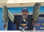 ミシガン州デトロイト・リバーで開催されているFLW Tour第8戦“Opens”はトーナメント3日めを終了、明日の最終日に進出する上位10名が決定した。トーナメントリーダーのビル・マクドナルドはこの日17Lb7ozとペースダウンして2位に後退。気を吐いたのが、この日23Lb11ozをウエイインしたラリー・ニクソン。トータルウエイト64Lb7ozで前日の7位から一気に首位へと浮上した。ニクソンは水深15ftでのダウンショットリグがメインパターンだったと語っている。以下、上位陣は3位スペンサー・シャフィールド、4位コーリー・ジョンストン、5位ジョー・バーロッグとなっている。日本人アングラーでは尻上がりに調子を上げている深江真一さんが19L13ozをウエイイン。前日の20位から9位へとポジションをアップさせて最終日に進出している。