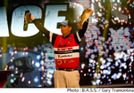 オクラホマ州グランド・レイクで開催されたB.A.S.S. Bassmaster Classicはトーナメントの全日程を終了。予選を勝ち抜いた上位25名で競われたこの日、トーナメントリーダーのクリフ・ペイスはリミットを達成できず4尾でのウエイイン。しかし、前日までのアドバンテージが功を奏してトータルウエイト54Lb12ozで自身初となるクラシックチャンプに輝いた。普段からジェントルマントして知られるペイスは、ステージ上でもはしゃぐことなく「これは私が一生大切にする贈り物であり、人生を変える最高の瞬間です」と語り喜びを噛み締めた。大会を通じて使用したベイトはジャッカルのスカッドミノーとソウルシャッド、そしてDDチェリー。さらにV&MのツインテールトレーラーをセットしたB&Mのフットボールジグだったと明かしている。