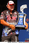 ウィスコンシン州ミシシッピ・リバーで開催されたB.A.S.S. Elite Series第6戦“Mississippi River Rumble”はトーナメントの全日程を終了。予選を通過した上位12名で競われたこの日、前日まで首位のアーロン・マーテンスは13Lb15ozとウエイトを伸ばすことができず2位に後退。このチャンスをものにしたのは前日まで2位につけていたベテランのトミー・ビッフル。この日16Lb13ozをウエイインしたビッフルが鮮やかな逆転優勝を果たした。ビッフルのメインベイトはジーン・ラルーのビッフル・ハードヘッドジグ。フックとウエイトが分かれているタイプのジグヘッドで、よりフレキシブルにアクションするのが特徴だという。サイズは7/16oz、トレーラーにはグリーンパンプキンのビッフルバグを使ったと語っている。なお、大森貴洋さんはこの日13Lb15ozをウエイインして9位でフィニッシュしている。