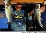 ミシシッピ州ロスバーネット・リザーバーで開催されているB.A.S.S.セントラルオープン第3戦はトーナメント2日めを終了。明日の最終日に進出する上位12名が決定した。前日のリーダー、ランドール・タープはこの日13Lb4ozをウエイイン。トータルウエイト29Lb4ozで依然首位をキープ。このタープを約2Lb差で追っているのが、前日6位につけていた木村健太さん。現在2位の木村さんが逆転優勝を達成すれば、来年のバスマスタークラシックの出場権が獲得できるだけに最終日の行方に注目したい。以下、上位陣は3位ブライアン・ポッター、4位ジェラルド・スポーラー、5位クリフ・クロケットという順位。なお、前日45位につけていた伊豫部健さんはこの日9Lbをウエイインし、20位にジャンプアップして大会を終えている。