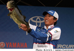 ジョージア州レイク・セミノールで開催されているB.A.S.S. Elite Series 第1戦はトーナメント3日めを終了。明日のファイナルに進出する上位12名が決定した。前日首位に浮上したブレット・ハイトはこの日2番手のウエイトとなる26Lb5ozをウエイイン。トータルウエイトを71Lb11ozとし、2位のマーク・デイビスに10Lb近い大差をつけて明日のファイナルに臨むこととなった。また、この日の最大魚となる7Lb12ozを含む23Lb12ozを持ち込んだ大森貴洋さんは、前日の18位から7位へとジャンプアップしてファイナル進出を決めている。以下、上位陣は3位バーニー・シュルツ、4位ケビン・ショート、5位アーロン・マーテンスとなっている。このほか日本人アングラーでは清水盛三さんが25位、桐山孝太郎さんが33位でのフィニッシュとなった。