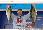 テキサス州トレドベンド・リザーバーで開催されているFLW Series Texas 第2戦はトーナメント2日めを終了。明日の最終日に進出する上位10名が決定した。前日のリーダー、トッド・キャスルダインはこの日19Lb14ozとまずまずのウエイトを持ち込んだものの、2位に後退。替わって首位に立ったのは、この日29Lb2ozというビッグサックを持ち込んだラッセル・セシル。セシルは前日13位からの大躍進を見せ、トータルウエイトを45Lb15ozとして首位に浮上した。テキサスリグのビッグバイト・ウォーマウスをメインに使用したセシルは、新たにベッドに上がってきた魚をターゲットにしたと語っている。以下、上位陣は3位クラーク・リーアム、4位ロニー・ワグナー、5位アンドリュー・アップショーとなっている。