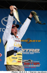 ミズーリ州テーブルロック・レイクで開催されたB.A.S.S. Elite Series第3戦はトーナメントの全日程を終了。予選を通過した上位12名で競われたこの日、トーナメントリーダーのマイク・マクリーランドは12Lb2ozをウエイイン。暫定4位につけていたマーク・デイビスが15Lb11ozをウエイインして追い上げたものの、マクリーランドが13oz差で逃げ切って優勝を果たした。マクリーランドのメインベイトはジャークベイト。「たとえタフになってもスローダウンしたりフィネスベイトに変えようとは思わなかった」と、SPROのマックスティック110と115を中心にした釣りを展開。このほか、風がやんだタイミングでは4inのパドルテールスイムベイトを投入。ウィグルワートも使用したと明かしている。