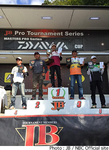 長野県野尻湖で開催されたJBマスターズシリーズ第4戦“ダイワCUP”はトーナメントの全日程を終了。前日トップウエイトをマークした庄司潤さんは、ウエイトを伸ばせず優勝戦線から離脱。このチャンスをものにしたのは、前日4位につけていた近藤健広さん。この日2番手のウエイトとなる2846gをウエイインした近藤さんが逆転優勝を果たした。以下、上位陣は2位鬼形毅さん、3位松村真樹さん、4位長友政貴さん、5位頼末敦さんという結果となった。なお、シーズン終了にともない年間ランキングも決定。バスオブザイヤーは早野剛史さんが獲得した。トーナメントの詳細および成績は、JBの公式サイト“NBC NEWS”にて。