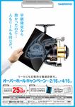株式会社シマノでは、本日2015年2月16日〜4月15日までの期間「リールオーバーホールキャンペーン」を実施する。シマノ製リールのオーバーホール技術料が25%OFFになるほか、オリジナルフィッシングタオルとロゴステッカーがもらえるチャンスだ。