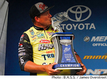 アラバマ州レイク・ガンターズビルで開催されたB.A.S.S. Elite Series第2戦はトーナメントの全日程を終了。予選を通過した上位12名で競われたこの日、トーナメントリーダーのマイケル・アイコネリはまさかの1尾でのウエイインとなり、優勝戦線から離脱。このチャンスをものにしたのは前日まで2位につけていたスキート・リースだった。この日のトップウエイトとなる25Lb5ozをウエイインしたリースはトータルウエイトを92Lb11ozとして見事な逆転優勝。「正直、プラクティスでは厳しい状況だった」と語ったリース。長年の親友で今回もルームメイトだったバイロン・ベルビックから、バストリックスの7inスイムベイトが効くとアドバイスを受けたという。このベイトは15年ほど前のモデルで、超スローに使うことがキーだったと語っている。なお、リースにアドバイスしたベルビックも準優勝を飾っている。