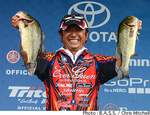 B.A.S.S. Elite Seriesは第7戦が開幕を迎えた。トーナメントウォーターはメリーランド州チェサピーク・ベイ。バスマスタークラシックをはじめ、さまざまなビッグイベントが開催されてきたタイダルウォーターである。この日のトップウエイトとなる17Lb8ozをウエイインしたのはアーロン・マーテンス。「今日は7回バイトがあったけど、2回バラしたよ」と語っているようにけっして楽な展開ではなかったようだ。10oz差の2位にはチャド・ピプケンスがつけており、清水盛三さんが16Lb9ozで3位につけている。以下、4位ブレント・エーラー、5位スキート・リースという上位陣。日本人アングラーでは伊豫部健さんが10Lb9ozで31位タイ、大森貴洋さんが6Lb5ozで56位タイ、桐山孝太郎さんが2Lb8ozで86位タイにつけている。なお、宮崎友輔さんは前節に引き続き体調不良により大会を欠場している。