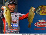 ミシガン州レイク・セント・クレアで開催されているB.A.S.S. Elite Series第8戦はトーナメント3日めを終了。明日のファイナルに進出する上位12名が決定した。トーナメントリーダーのブランドン・パラニュークはこの日20Lbをウエイイン。トータルウエイトを64Lb5ozとして首位のまま明日のファイナルに臨むこととなった。「この2日間で昼にバイトが止まってしまうことが分かったので、早めの行動を心がけたよ」と語っている。このパラニュークを2Lb差で追っているのが、この日3番手のウエイトとなる21Lb11ozをマークしたトッド・フェアクロス。以下、3位ジェームズ・イーラム、4位クリス・レイン、5位ジョナサン・バンダムという上位陣となっている。日本人アングラーでは唯一セミファイナルに進出した大森貴洋さんが34位でフィニッシュしている。