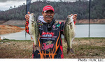 カリフォルニア州レイク・シャスタで開催されているFLW Series Westernはトーナメント2日めを終了。明日の最終日に進出する上位10名が決定した。初日のリーダー、リチャード・ドビンスはこの日8Lb5ozとペースが上がらず2位に後退。替わって首位に立ったのは、初日17位につけていたグレッグ・グティーレス。この日15Lb13ozをウエイインしたグティーレスはトータルウエイトを27Lb2ozとしている。詳細なパターンには触れなかったものの、フィネスベイトで朝イチにキャッチした2尾のキッカーが功を奏したと語った。以下、上位陣は3位ブライアント・スミス、4位ジェフ・ミケルス、5位マイルス・ハウとなっている。