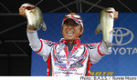 ルイジアナ州トレドベンド・リザーバーで開催されているBassmaster Elite Series第5戦はトーナメント3日めを終了。明日のファイナルに進出する上位12名が決定した。トーナメントリーダーのケビン・バンダムは依然として好調を維持。この日のトップウエイトとなる24Lb12ozをウエイインし、トータルウエイトを74Lb12ozとして独走状態となっている。以下、上位陣は2位クリス・レイン、3位イッシュ・モンロー、4位ハンク・チェリー Jr.、5位ポール・ミューラーとなっている。日本人アングラーで唯一セミファイナルに進出した清水盛三さんは16Lb13ozをウエイイン。トータルウエイトを55Lb13ozとして11位につけ、今季初のファイナル進出となっている。