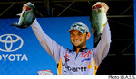 ニューヨーク州カユーガ・レイクで開催されているBassmaster Elite Series第7戦はトーナメント2日めを終了。明日のセミファイナルに進出する上位50名が決定した。初日のリーダー、清水盛三さんはこの日16Lb10ozと大きくウエイトを伸ばせず3位に後退。替わって首位に立ったのは、この日21Lb7ozをウエイインしたジョーダン・リー。リーはトータルウエイトを40Lb8ozとしており、清水さんとの差は8ozとなっている。以下、上位陣は2位ジェイコブ・ポロズニック.、4位ドリュー・ベントン、5位ディーン・ロハスとなっている。日本人アングラーでは桐山孝太郎さんが14位、伊豫部健さんが48位でセミファイナルに進出。大森貴洋さんが67位、宮崎友輔さんが98位でのフィニッシュとなった。