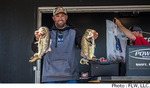 カリフォルニア州カリフォルニア・デルタで開催されているFLW Series Western第2戦はトーナメント2日めを終了。明日のファイナルに進出する上位10名が決定した。初日のリーダー、ビュー・ジョードリーはこの日10Lb8ozとウエイトを伸ばせず5位に後退。替わって首位に立ったのは、初日2位につけていたロバート・リーだった。この日のトップウエイトとなる19Lb14ozをウエイインしたリーはトータルウエイトを40Lb15ozとしている。このフィールドで数多くの勝利をあげているリーはこの日、ワッキーリグのフィネス系ソフトベイトなどを使用したと明かしている。以下、上位陣は2位ハンター・シュランダー、3位デイン・ミッチェル、4位アンディ・スコルツという成績。日本人アングラーでは児玉一樹さんがトータルウエイト21Lb6ozで56位でのフィニッシュとなった。
