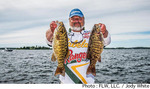 ニューヨーク州1000アイランズで開催されているFLW Series Northern第2戦はトーナメント2日めを終了。明日のファイナルに進出する上位10名が決定した。初日のリーダー、コリー・ジョンストンはこの日17Lb3ozとウエイトを伸ばせず7位に交代。替わって首位に立ったのは、初日3位につけていたジョセフ・フォンジーだった。この日22Lb9ozをウエイインしたフォンジーはトータルウエイトを45Lb1ozとしている。前日、そしてこの日もレイク・オンタリオまでのロングランを敢行したフォンジーは「リバーの釣りは苦手なので、明日もレイクへと走るつもりだ」と語っている。以下、上位陣は2位ティミー・トンプキンス、3位クリス・ジョンストン、4位ケーシー・スミス、5位カート・ミッチェルとなっている。