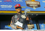 オクラホマ州グランド・レイクで開催されたB.A.S.S.セントラルオープン第3戦はトーナメントの全日程を終了。予選を通過した上位12名で競われたこの日、トーナメントリーダーのアンディ・オルテガはノーウエイトで優勝戦線から離脱。このチャンスをものにしたのは、前日まで2位につけていたジェームス・イーラムだった。この日8Lb15ozをウエイインしたイーラムがトータルウエイト36Lb14oで逆転優勝を果たしている。メインベイトはキャロライナリグのリザード、そしてジャッカルのポンパドールだったと語った。日本人で唯一ファイナルに進出した松下雅幸さんはこの日2番手のウエイトとなる11Lb4ozをウエイイン。前日の9位から3位へと大きく順位を上げての入賞を果たしている。