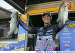ミシシッピ州ロス・バーネット・リザーバーで開催されているB.A.S.S.セントラルオープン第1戦はトーナメント2日めを終了。明日のファイナルに進出する上位12名が決定した。初日のリーダー、クラーク・リーアムは4Lb2ozと振るわず12位に後退。代わって首位に立ったのは前日5位につけていた伊豫部健だった。13Lb6ozを持ち込んだ伊豫部はトータルウエイトを31Lb1ozとし、2位のブラッドリー・バーンズに14oz差をつけている。以下、上位陣は3位クエンティン・キャポ、4位ブレーク・ベッツ、5位スティーブン・ブローニングとなっている。日本人アングラーでは宮崎友輔が14Lb13ozを持ち込み前日の46位から13位へとジャンプアップ、惜しくもファイナル進出を逃した。このほか、木村建太が89位、加藤誠司が131位、佐藤義和がノーウエイトで大会を終えている。