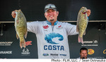ミシガン州レイク・セントクレアで開催されているFLW Tour第7戦はトーナメント3日めを終了。明日のファイナルに進出する上位10名が決定した。トーナメントリーダーのチャド・グリズビーはこの日21Lb3ozとややペースダウンして2位に後退。代わって首位に立ったのは、前日まで2位につけていたディラン・ヘイズだった。22Lb6ozをウエイインしたヘイズはトータルウエイトを72Lb3ozとしてトーナメントリーダーとして明日のファイナスに臨むこととなった。以下、上位陣は3位ブラッド・ナイト、4位スコット・ドブソン、5位ブライアン・スリフトとなっている。