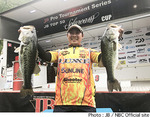 JB TOP 50は第3戦“東レソラロームCUP”がキックオフを迎えた。トーナメントウォーターは奈良県七色ダム。温帯低気圧に変化した台風7号の影響で全国的に雨となっているが、七色ダムも例外ではなく朝から雨に見舞われた。ただし魚の活性は高かったようで、参加48名中リミットメイクを達成したのは38名だった。この状況の中、7725gというビッグウエイトをウエイインしたのは有里拓。2位の青木大介に2350gの大差をつけて初日をリードしている。以下、上位陣は3位加藤誠司、4位野村俊介、5位三原直之となっている。トーナメントの詳細および成績は、JBの公式サイト“NBC NEWS”にて。
