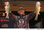 ジョージア州レイク・ラニアーで開催されているB.A.S.S. Elite Series第2戦はトーナメント2日めが終了、明日のセミファイナルに進出する上位35名が決定した。初日のリーダー、ジェフ・ガスタフソンはこの日2尾のウエイインにとどまり大きく後退。代わって首位に立ったのは、初日2位につけていたデビッド・マリンズだった。この日のトップウエイトとなる19Lb6ozを持ち込んだマリンズはトータルウエイトを37Lb2ozとしている。以下、上位陣は2位ポール・ミューラー、3位タイにキース・コームスとクリス・ザルディーン、5位ステットソン・ブレイロックとなっている。宮崎友輔はトータルウエイト28Lb1ozで22位につけ、明日のセミファイナルに進出する。